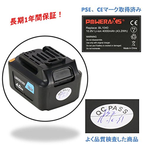 【 POWERAXIS 】マキタ makita BL1040 BL1040B cl107fdshw 互換バッテリー Max CXTシリーズ にも対応 BL1015 4000mah 10.8V リチウムイオン バッテリー