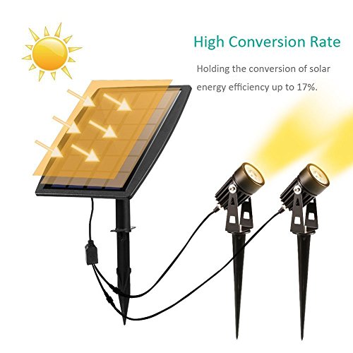 PRODELI ソーラー LED ライト アウトドア スポットライト 太陽光パネル充電 ガーデンライト 2W 200LM防犯対策IP65防水 2-IN-1 長さ3m 芝生ランプ15メートル照明距離 光センサー 自動点灯/消灯 玄関先 庭 車道 歩道のライトアップに最適 ウォームホワイト