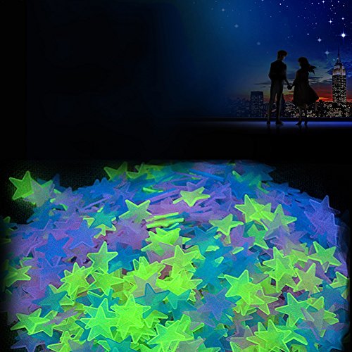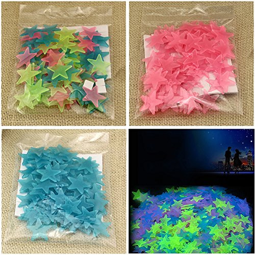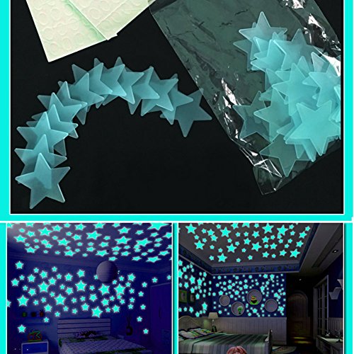 100枚 可愛い 蛍光星ステッカー 3d夜光ウォールステッカー 壁ステッカー (ブルー)