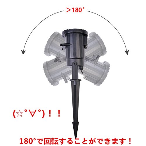 - 【取り付けやすい】:草地やその他の不均等な場所で、簡単で安定した場所のための円形基盤と取り外し可能な地上杭。最適な結果が得られるように、取り付けブラケットの照明角度を調整するために使用されます。