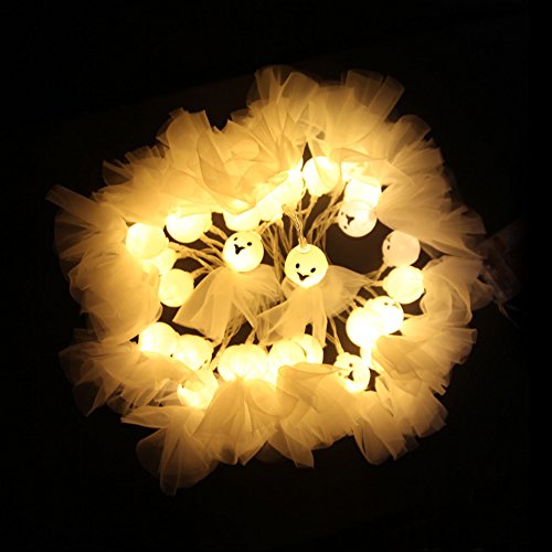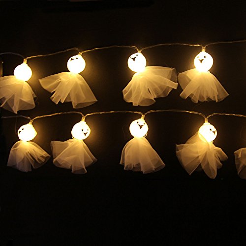 ハロウィンの祭りLEDイルミネーション ライト電池式 1.5M 10個白い幽霊ライト ストリングライト アウトドア飾りライト 可愛い ハロウィン/クリスマス/イベント用飾り パーティデコレーション クリスマス電飾/室内/屋外飾り(ウォームホワイト ) IP65防水防滴LEDライト