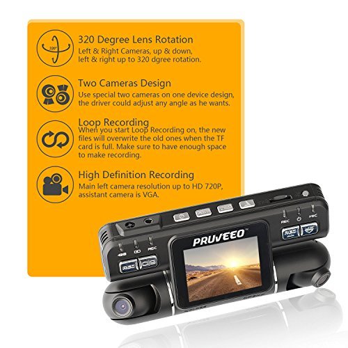 PRUVEEO MX2 Car Dash Cam Dual Lens 240 Degree Wide Angle Dashboard Camera Driving Recorder with G-Sensor, Loop Recording for Vehicles [並行輸入品]
