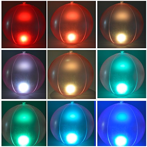 - 1.ビーチボールに12色のLEDライトを取り付ける事が出来ます。また、リモコン操作でONOFFの他、光の強さや点滅の速さも簡単に操作出来る為、楽しみ方は多様です。