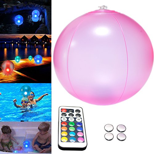 PUGUビーチボール LEDライト 光る リモコン レジャー パーティ インスタグラム 防水 キッズ 海水浴 プール ナイトプール 海 キャンプ アウトドア お風呂 照明 インテリア お洒落 夏 空気入れ 新商品 (ピンク)