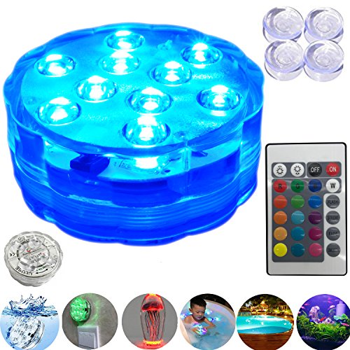 PUGU 潜水ライト フローティング 10個高光度LED素子 16カラ―ライト リモコン操作 電池交換再利用可 IP68防水 イルミネーション ストリング アクアリウム デコレーション 水族館 水槽 花瓶 プール バスルーム 浴室 トイレ クリスマス ハロウィン パーティ