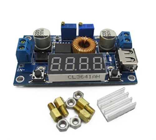【PacoShop919】 降圧 型 可変 DC-DC コンバーター基板 デジタル電圧計付 5A 75W USB出力端子付 P481