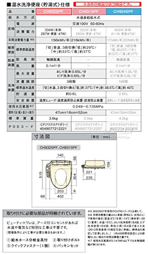 お手入れラクラク 温水洗浄便座 ビューティ・トワレ(脱臭あり) パステルアイボリー CH932SPF