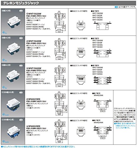 【Panasonic】 コスモシリーズワイド21配線器具 埋込テレホンモジュラジャック(6極2心) WNT15629W