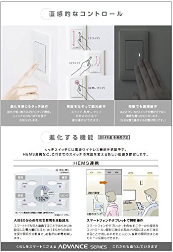 Panasonic アドバンスシリーズ スイッチやコンセント。当たり前に存在するものを上質にすることで、住まいは 引き立ちます。 アドバンスシリーズは「デザイン・操作性・機能」にこだわった、新しい上質のカ タチです。さらに、アドバンスシリーズ(リンクモデル)はスイッチに電波受信・送信を搭載。スマートフォンやリモコン操作、HEMS連携など、より快適で便利なくらしを実現 する次世代モデルです。 【スイッチ・プレート組み合わせセット(WTA7101W-0512-22W2)】 ・埋込ほたるスイッチ表示付(B)片切(WTA5051/\480-)2個 ・スイッチ絶縁取付(WTA3700/\65-)1枚 ・表示付ハンドル/ダブル(WTA3022W/\280-)2個 ・スイッチプレート1連用/マットホワイト(WTA7101W/\320-)1枚 ※上記各商品の価格はメーカー希望小売価格(税抜)です。