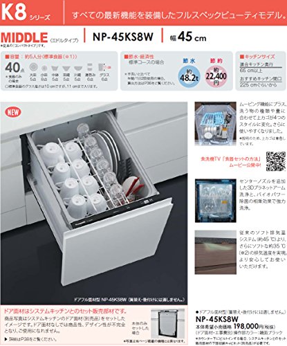 【NP-45KS8W】 Panasonic[パナソニック] ビルトイン食器洗い乾燥機(食洗機) K8シリーズ 幅45cm ミドルタイプ ドアフル面材型