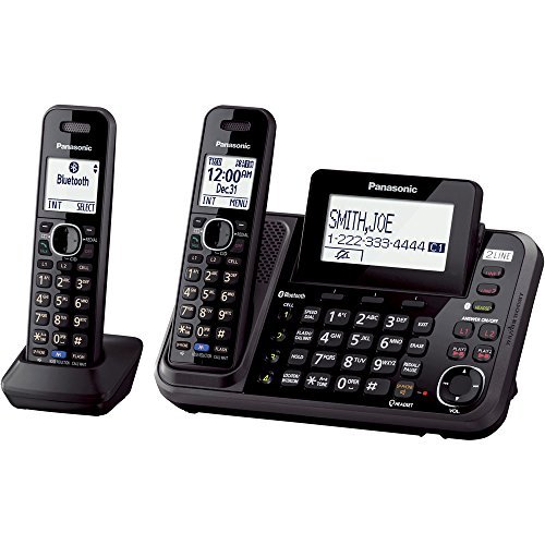 The Panasonic KX-TG9542B DECT 6.0 Plus 2-Line Link2Cell Bluetooth Enabled Answering System with base keypad and 2 cordless handsets, allows you to link up to 4 cell phones. With 2-line operation, this expandable unit supports 3 simultaneous conversations, 2 on the landlines and 1 on the cell. The Text Message Alert feature notifies you of received text message on your cell phone through an alert on your cordless handset when your cell phone is synced to the base unit. Enjoy two answering systems so you can separate your work life from your home life. Now you can be alerted to recorded messages whether you're at home or on the road. When a caller records a message, the base unit will beep, alerting those in the house. Not at home? The phone will automatically send a message to a registered cell or office phone along with playback options.
