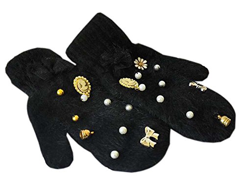 女性のミトン暖かい素敵な手袋ビーズの装飾冬の手袋、ブラック