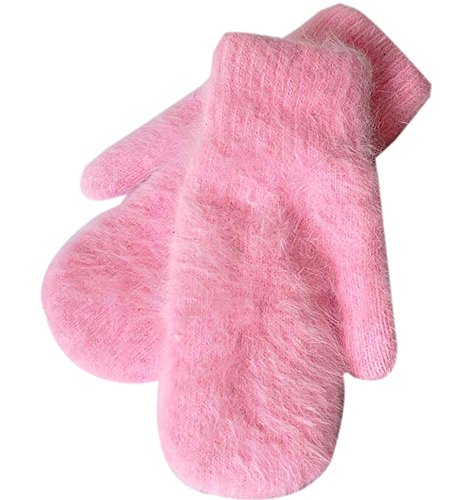 女性のミトン暖かい厚手の手袋冬の手袋を編む、ピンク