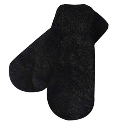 女性のミトン暖かい厚手の手袋冬の手袋を編む、ブラック