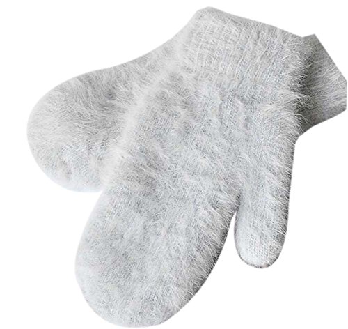女性のミトン暖かい厚手の手袋冬の手袋を編む、グレー