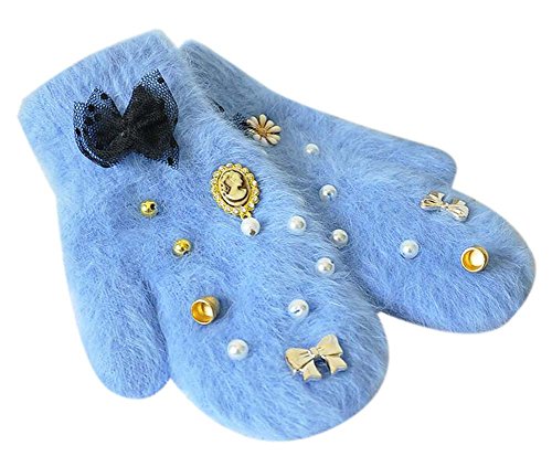 女性のミトン暖かい素敵な手袋ビーズの装飾冬の手袋、青