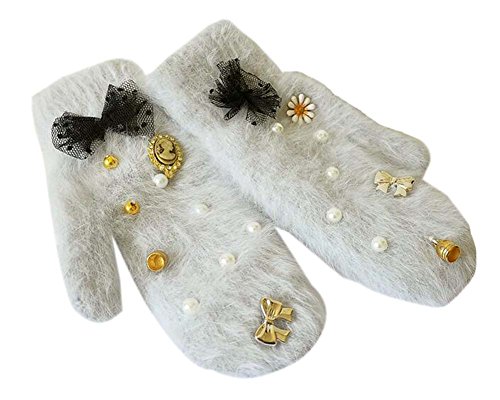 女性のミトン暖かい素敵な手袋ビーズの装飾冬の手袋、グレー