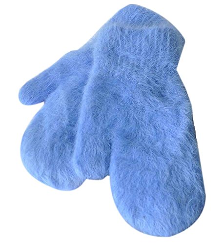 女性のミトン暖かい厚手の手袋冬の手袋を編む、青