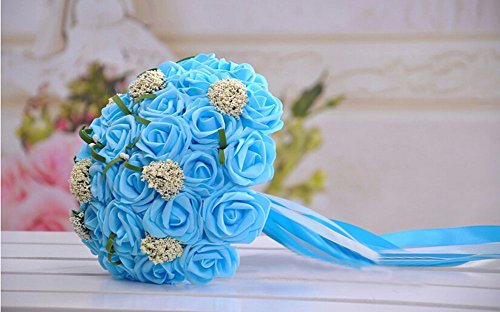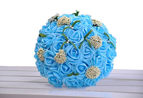 30個の人工ウェディングブーケ花嫁ブライダルブーケローズフラワーBLUE