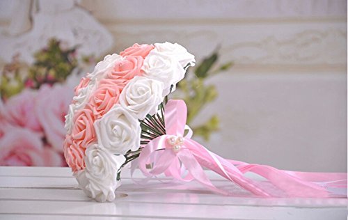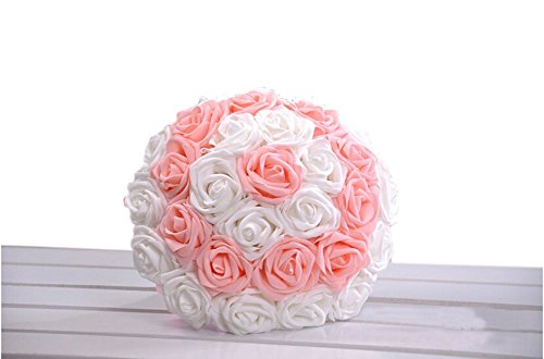 30個のブライダルブーケローズフラワー人工ウェディングブーケピンク&ホワイト