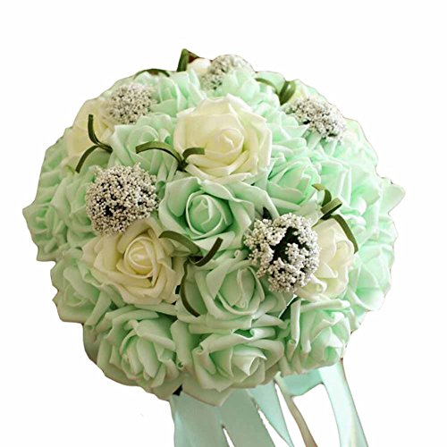 結婚式ブライダルブーケ結婚式人工花束人工ローズ、ライトグリーン 結婚式の花嫁のブーケ 人工花束