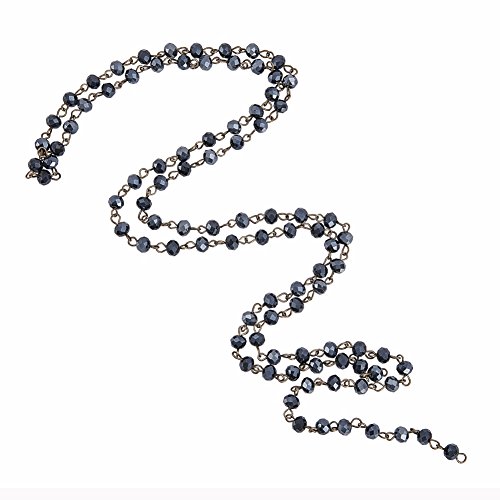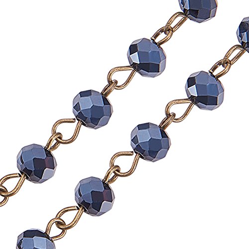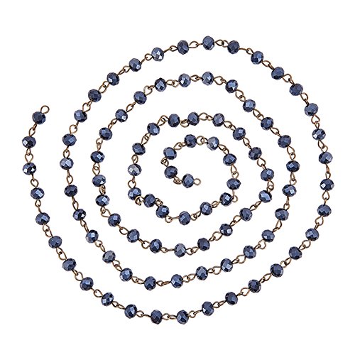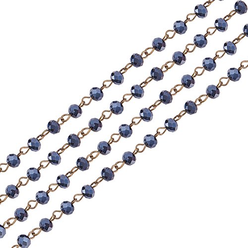 PandaHall Elite 1m/連 5連セット ガラスビーズ そろばん ビーズ ラウンド チェーン カット 多面的 クリスタル 手作りチェーン リング DIY 装飾 鉄製 アンティークゴールド 鎖 ブラック 6mm直径
