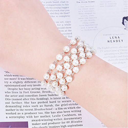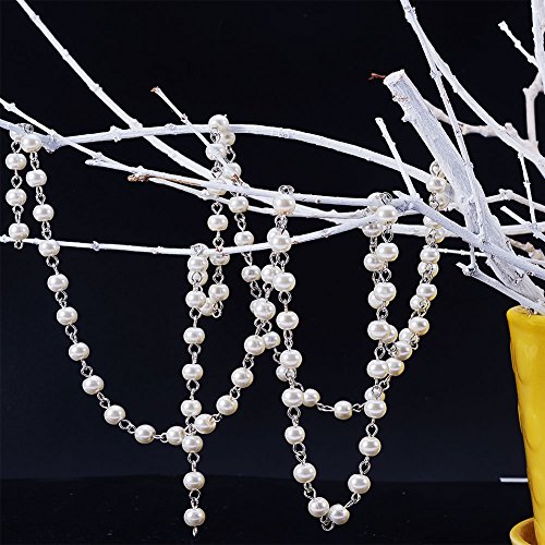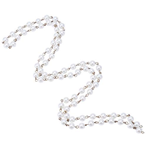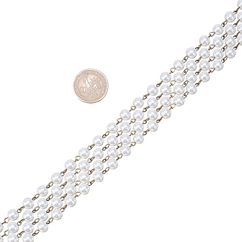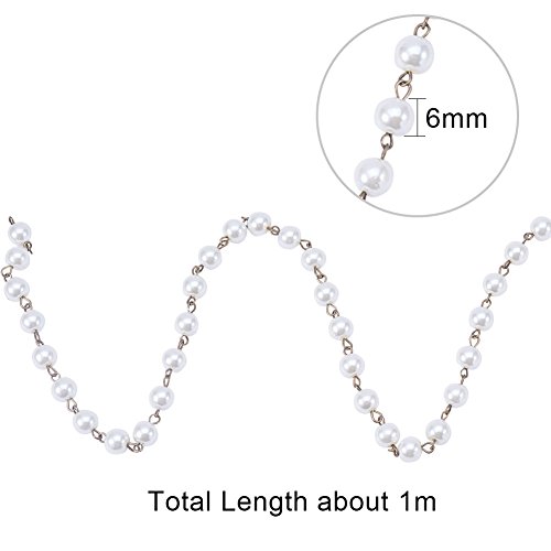 PandaHall Elite 1m/連 5連セット ラウンド ガラス パール ビーズ チェーン 手作りチェーン リング DIY 装飾 鉄製 プラチナ 鎖 6mm直径 アイボリー