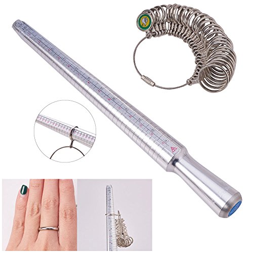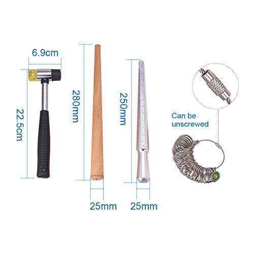 PandaHall Elite 4点/セット リングゲージ&木製芯金棒&サイズ棒&コンビハンマー 指輪 サイズ 調整 セット ゴム プラ ジュエリー道具 スチール製 クセサリー工具 クラフト用品 手芸用品 ハンドメイド #2