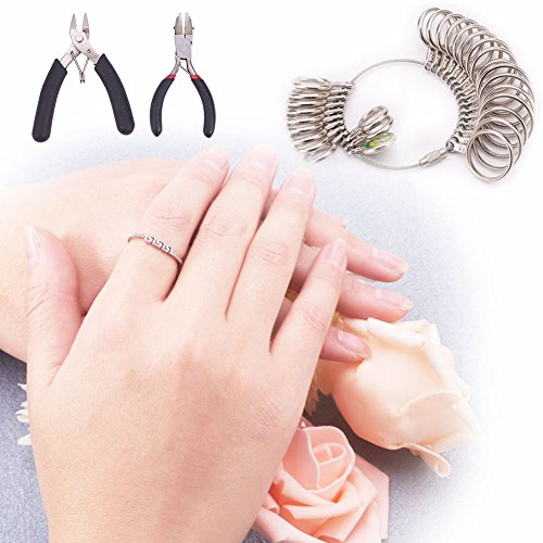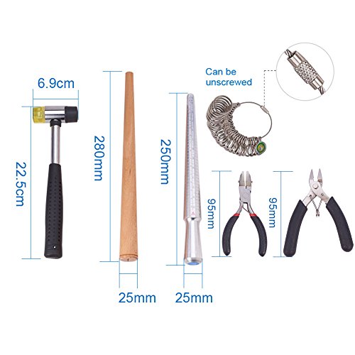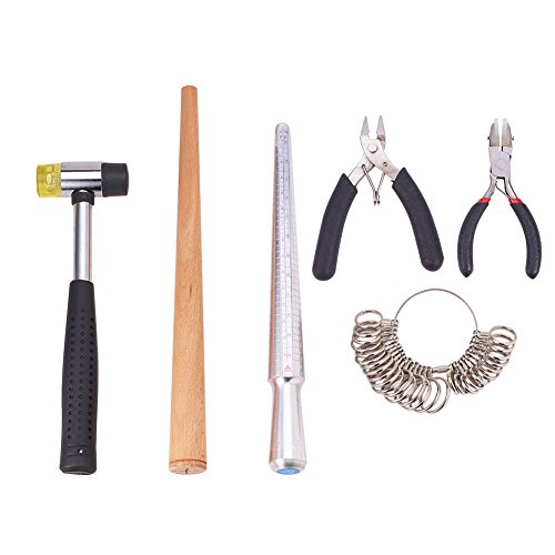 PandaHall Elite 5種類セット 指輪ゲージ リングゲージ サイズゲージ プロ仕様 指輪 サイズ 測定 調整 コンビハンマー ゴム&プラ サイズ棒 ペンチ ジュエリー用 道具 スチール 木製 ハンドメイド 手作り 便利グッズ