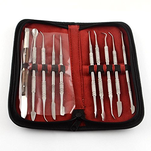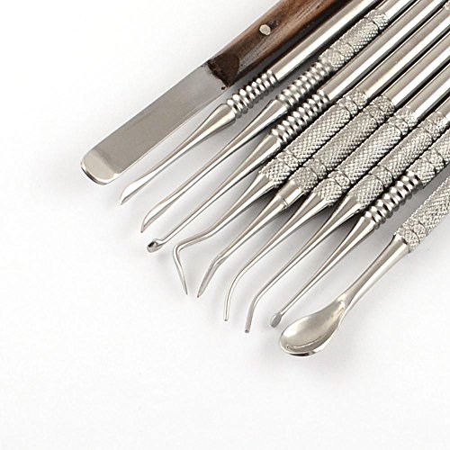 PandaHall スチール 両頭 鎌形 篆刻刀 彫刻刀 セット 図工 美術 プラチナ 10本 155~175x5~6mm