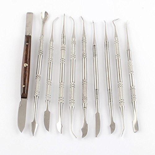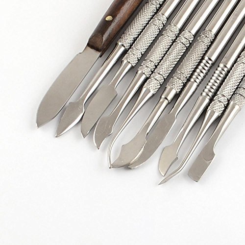 PandaHall Elite スチール 両頭 鎌形 篆刻刀 彫刻刀 セット 図工 美術 ツール プラチナ 10本 155~175x5~6mm
