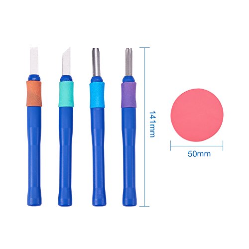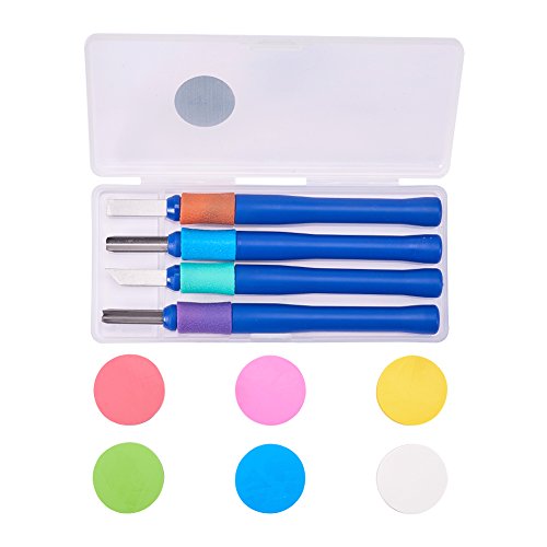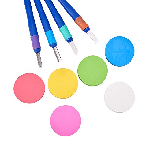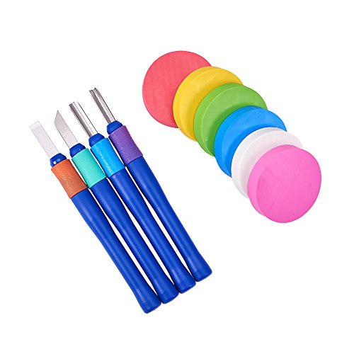 PH PandaHall 10点セット 彫刻ツール(4点) 彫刻用 ラウンド ブロック(6個) ゴム スタンプ 丸形 ゴム印 彫刻道具 手彫り 木彫り 切削工具 彫刻・木工・DIY・伝統工芸・美術専門・泥人形