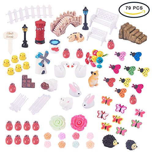 PH PandaHall 約79個セット 樹脂製 カボション フラットバック 飾り付パーツ ミニチュア 装飾品 アクセサリーパーツ DIY用品 手作りキット 手芸材料 橋・看板・灯・ポスト・猫・カモ・椅子・ガチョウ・蝶々・壺・花柄など ヘアアクセサリー・ブローチ・ピアス・ドールハウスなど 製作