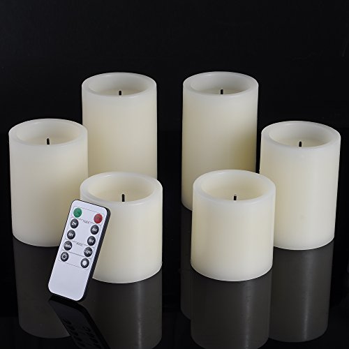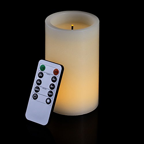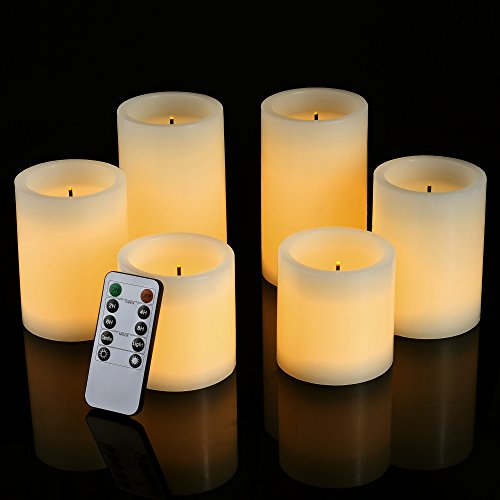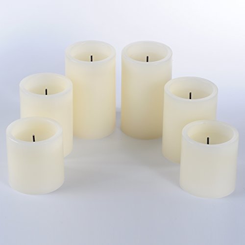 ちらつきFlameless LED Candles 3 " x 4 " with 10-keyリモート制御タイマークラシックピラー光学ファイバーWick Real Wax電池式キャンドル、アイボリー色、6のセット