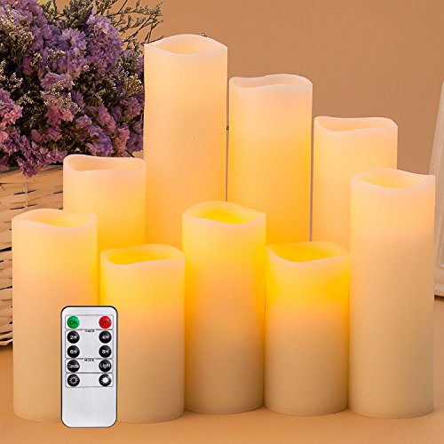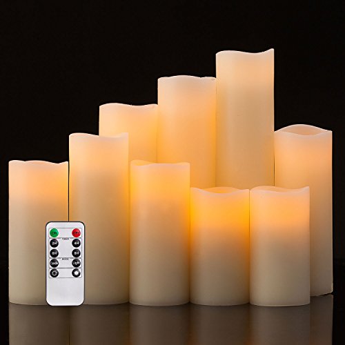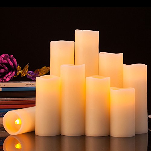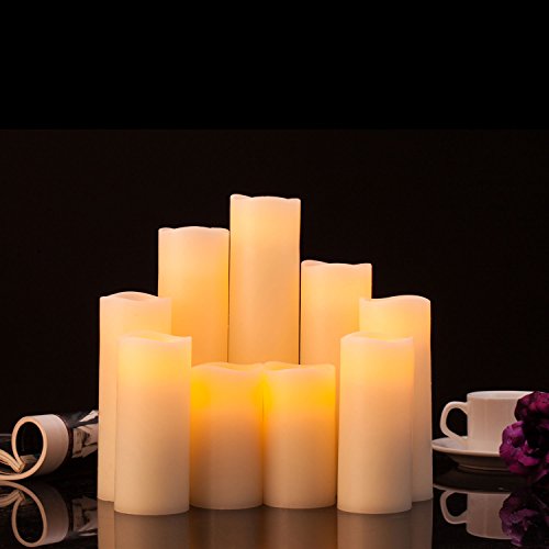 enpornkフレイムレスキャンドルLEDピラー電池式キャンドルリモートタイマー付きアイボリー色のセット9 ( D 3 " x H 3 / 3インチ/ 4インチ/ 4インチ/ 5インチ/ 5インチ/ 6インチ/ 7インチ/ 8インチ) yu-time-0001 3"x3"/4"/5"/6"/7"/8"