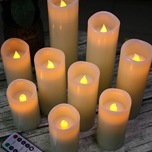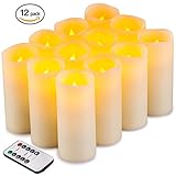 enpornkフレイムレスキャンドル電池式LED Pillar RealワックスちらつきElectricキャンドルwithリモート制御タイマー、アイボリー色、12セット