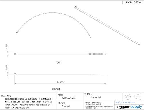 Panduit BT4LH-TL30 Dome-Top Barb Ty Cable Tie, Heat Stabilized Nylon 6.6, Black Light-Heavy Cross Section, Straight Tip, 120lbs Min Tensile Strength, 4" Max Bundle Diameter, .065" Thickness, .275" Width, 14.9" Length (Pack of 250) [並行輸入品]