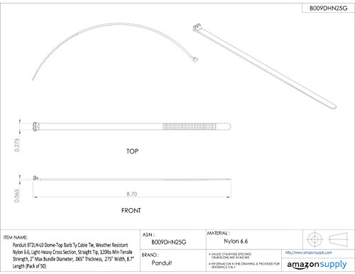 Panduit BT2LH-L0 Dome-Top Barb Ty Cable Tie, Weather Resistant Nylon 6.6, Light-Heavy Cross Section, Straight Tip, 120lbs Min Tensile Strength, 2" Max Bundle Diameter, .065" Thickness, .275" Width, 8.7" Length (Pack of 50) [並行輸入品]