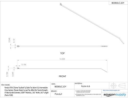 Panduit BT4I-C Dome-Top Barb Ty Cable Tie, Nylon 6.6, Intermediate Cross Section, Plenum-Rated, Curved Tip, 40lbs Min Tensile Strength, 4" Max Bundle Diameter, 0.049" Thickness, .141" Width, 14.3" Length (Pack of 100) [並行輸入品]