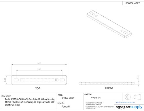Panduit MTP2S-E6-C Multiple Tie Plate, Nylon 6.6, #6 Screw Mounting Method, 2 Bundles, 2.50" Hole Spacing, .13" Height, .50" Width, 3.00" Length (Pack of 100) [並行輸入品]
