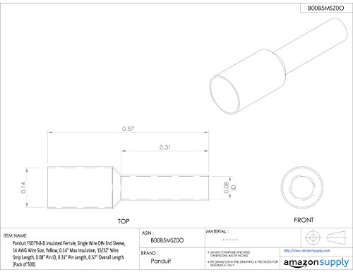 Panduit FSD79-8-D Insulated Ferrule, Single Wire DIN End Sleeve, 14 AWG Wire Size, Yellow, 0.14" Max Insulation, 15/32" Wire Strip Length, 0.08" Pin ID, 0.31" Pin Length, 0.57" Overall Length (Pack of 500) [並行輸入品]