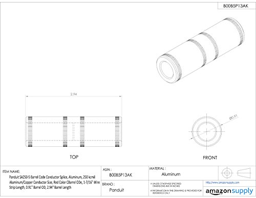 Panduit SA250-5 Barrel Code Conductor Splice, Aluminum, 250 kcmil Aluminum/Copper Conductor Size, Red Color CBarrel ODe, 1-7/16" Wire Strip Length, 0.91" Barrel OD, 2.94" Barrel Length [並行輸入品]