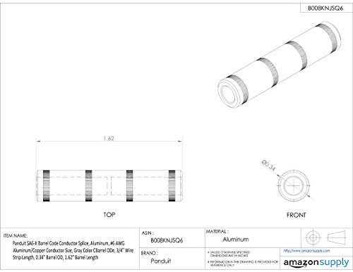 Panduit SA6-X Barrel Code Conductor Splice, Aluminum, #6 AWG Aluminum/Copper Conductor Size, Gray Color CBarrel ODe, 3/4" Wire Strip Length, 0.34" Barrel OD, 1.62" Barrel Length [並行輸入品]
