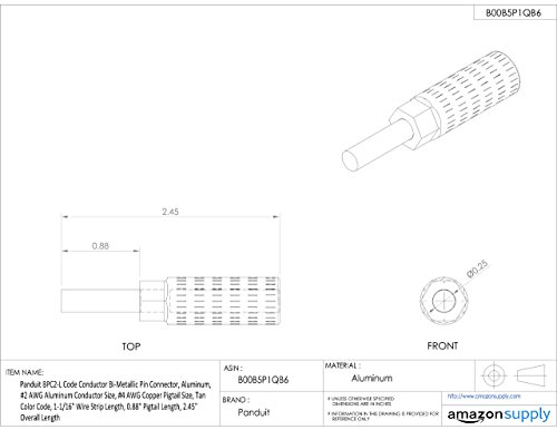 Panduit BPC2-L Code Conductor Bi-Metallic Pin Connector, Aluminum, #2 AWG Aluminum Conductor Size, #4 AWG Copper Pigtail Size, Tan Color Code, 1-1/16" Wire Strip Length, 0.88" Pigtail Length, 2.45" Overall Length [並行輸入品]