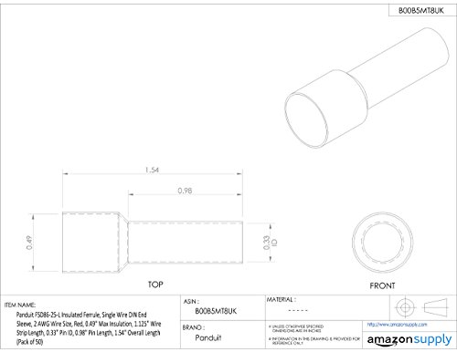 Panduit FSD86-25-L Insulated Ferrule, Single Wire DIN End Sleeve, 2 AWG Wire Size, Red, 0.49" Max Insulation, 1.125" Wire Strip Length, 0.33" Pin ID, 0.98" Pin Length, 1.54" Overall Length (Pack of 50) [並行輸入品]