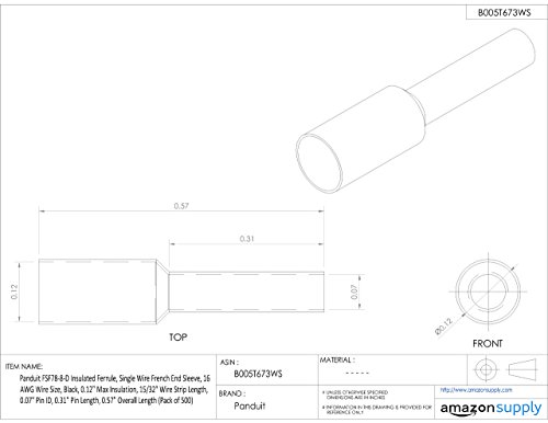 Panduit FSF78-8-D Insulated Ferrule, Single Wire French End Sleeve, 16 AWG Wire Size, Black, 0.12" Max Insulation, 15/32" Wire Strip Length, 0.07" Pin ID, 0.31" Pin Length, 0.57" Overall Length (Pack of 500) [並行輸入品]
