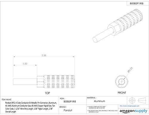Panduit BPC1-X Code Conductor Bi-Metallic Pin Connector, Aluminum, #1 AWG Aluminum Conductor Size, #3 AWG Copper Pigtail Size, Tan Color Code, 1-1/16" Wire Strip Length, 1.00" Pigtail Length, 2.58" Overall Length [並行輸入品]