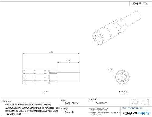 Panduit BPC300-X Code Conductor Bi-Metallic Pin Connector, Aluminum, 300 kcmil Aluminum Conductor Size, 4/0 AWG Copper Pigtail Size, Green Color Code, 1-7/16" Wire Strip Length, 1.63" Pigtail Length, 4.10" Overall Length [並行輸入品]