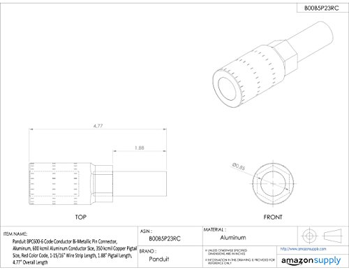 Panduit BPC600-6 Code Conductor Bi-Metallic Pin Connector, Aluminum, 600 kcmil Aluminum Conductor Size, 350 kcmil Copper Pigtail Size, Red Color Code, 1-15/16" Wire Strip Length, 1.88" Pigtail Length, 4.77" Overall Length [並行輸入品]