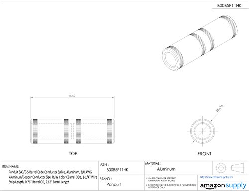 Panduit SA3/0-5 Barrel Code Conductor Splice, Aluminum, 3/0 AWG Aluminum/Copper Conductor Size, Ruby Color CBarrel ODe, 1-1/4" Wire Strip Length, 0.76" Barrel OD, 2.62" Barrel Length [並行輸入品]